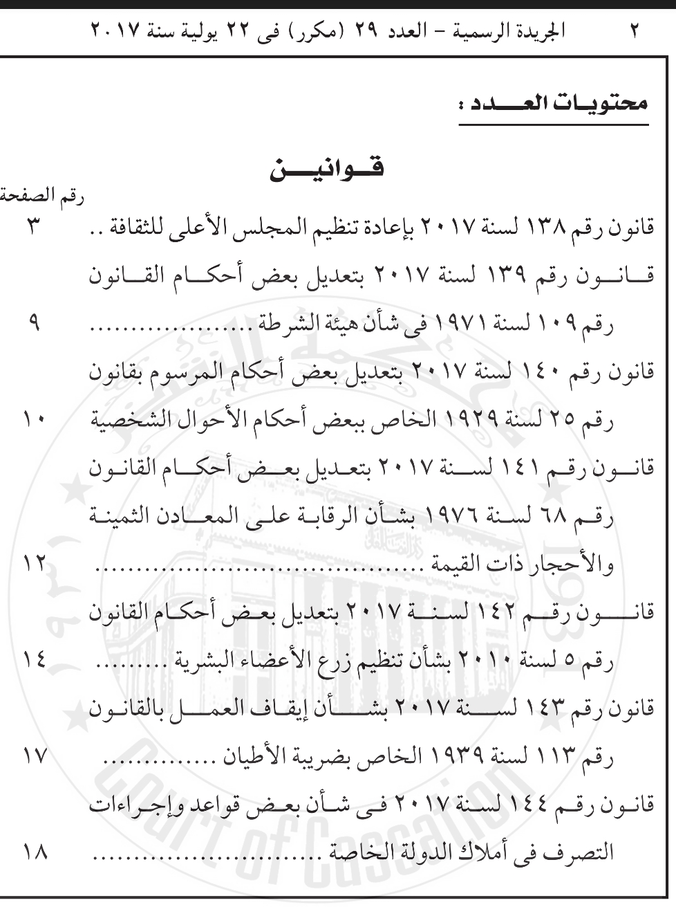 تحميل العدد 29 من الجريدة الرسمية المصرية بتاريخ 23 يوليوز 2017