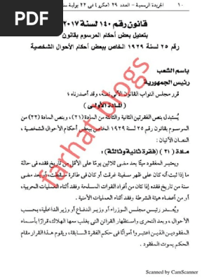القانون رقم 140 لسنة 2017 بتعديل بعض أحكام المرسوم بقانون رقم 25 لسنة 1929 الخاص ببعض أحكام الأحوال الشخصية