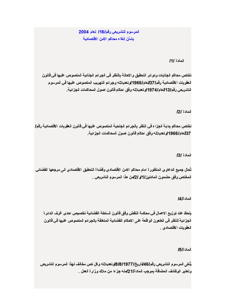 مرسوم إلغاء محاكم الأمن الاقتصادية السوري