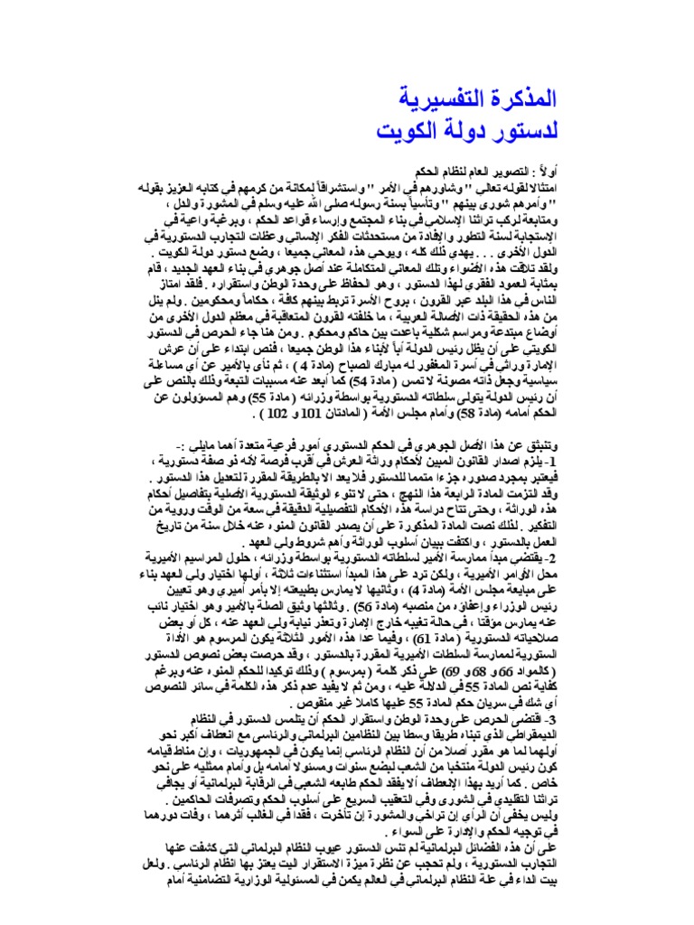 المذكرة التفسيريه لدستور الكويت