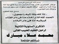 ألوان الوطن للسنة العاشرة مجهول ينعى حفيد مبارك في وفيات الأهرام