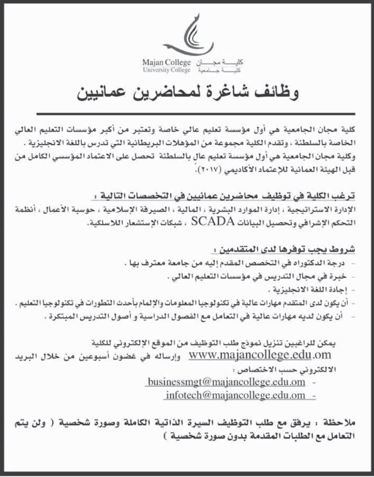 شبكة وظائف عمانية على تويتر الجمعة 1 6 2018 كلية مجان وظائف شاغرة