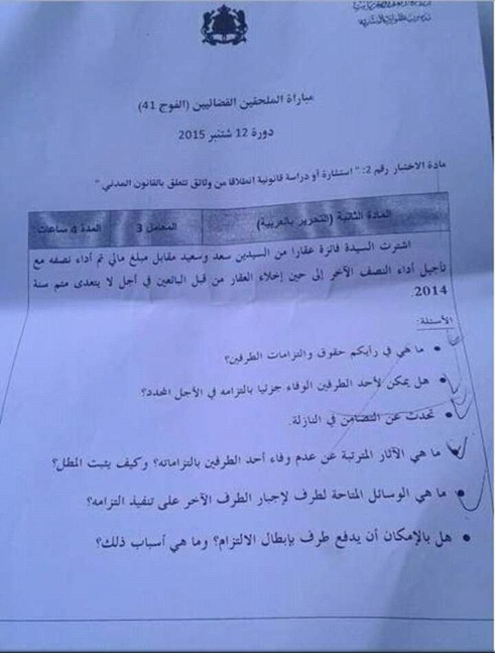 نماذج الاختبارات الكتابية لمباراة توظيف الملحقين القضائيين 2015